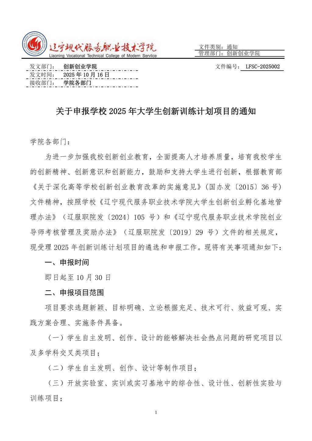 关于辽宁省大学生创新大赛(2025)网络初评我校推荐项目名单的公示